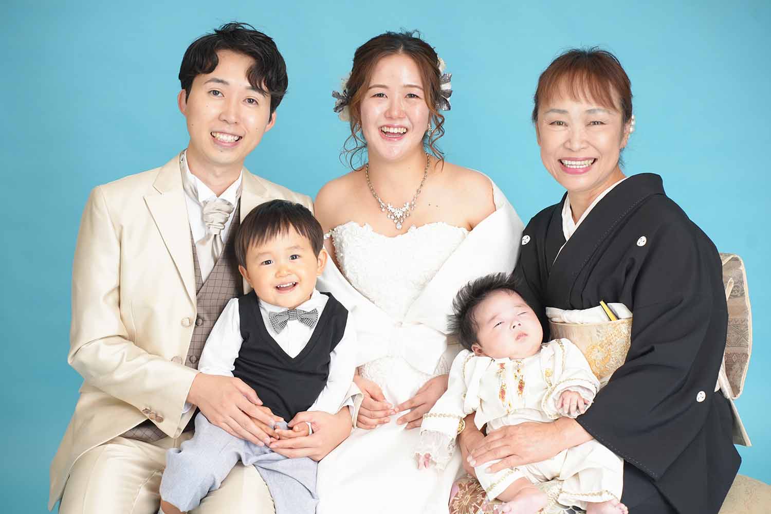 式の会場ではバタバタしてしまうご家族写真も、スタジオでは落ち着いて撮影することができます!