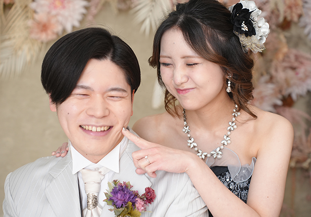 新郎様のほっぺたをつんつん🥰自然体な表情も素敵ですね🌟