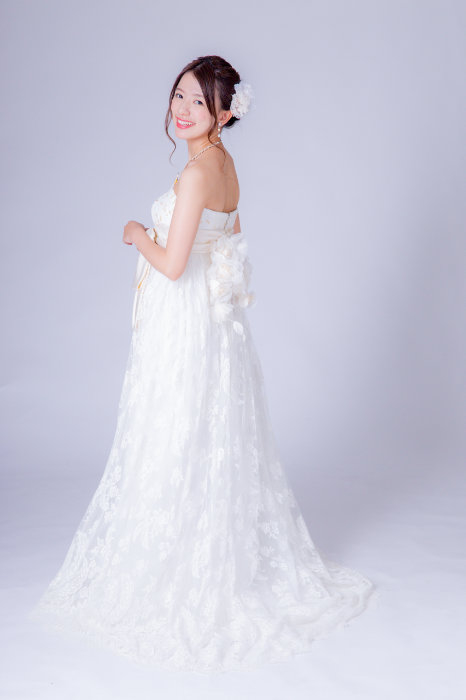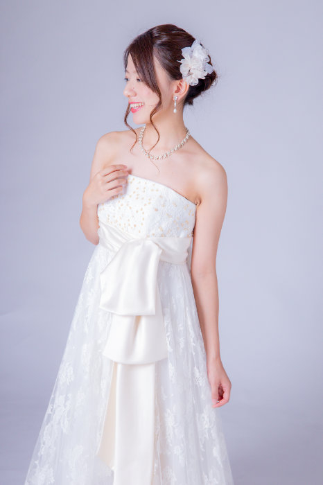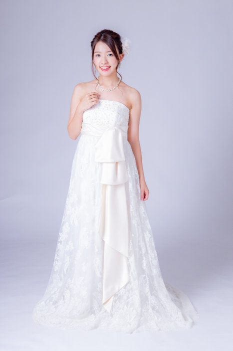 スレンダーラインのドレスは、スタイリッシュさを出したい方におすすめです。リボンでウエストをマークしているので足長効果があります。